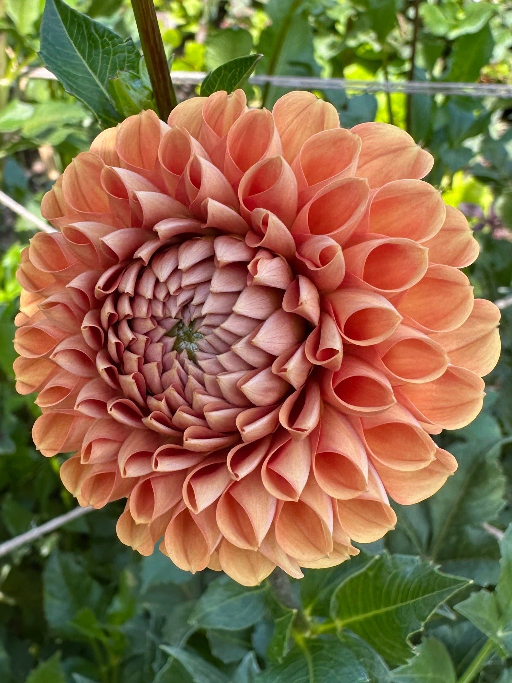 Muted orange. Popular and versatile. This reliable ball, Dahlia is a favorite with our florists as well as at the farmers market. Strong stems with great color all season.